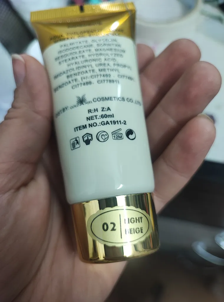 به طور کلی از رنگ کرم پودر راضی بودم پوشش دهی ملایم بود اما دو نکته منفی وجود داشت یکی اینکه حجم کرم بسیار کم است و بیشتر با هوا پر شده و دیگری اینکه کرم جعبه نداشت و در پلاستیک پیچیده شده بود که احتمالا به خاطر تاریخ تولیدی است که با برچسب چسبانده شده ۲۰۲۲ و اینکه قیمت کرم پایینتر بوده در آن زمان و فروشنده به خاطر همین بدون جعبه ارسال کرده