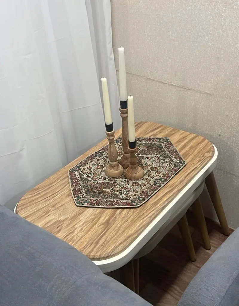 * دور میز هم که روکشی که چسب زدند برای روی میز یکسان چسب نزدند و زدگی داره!
