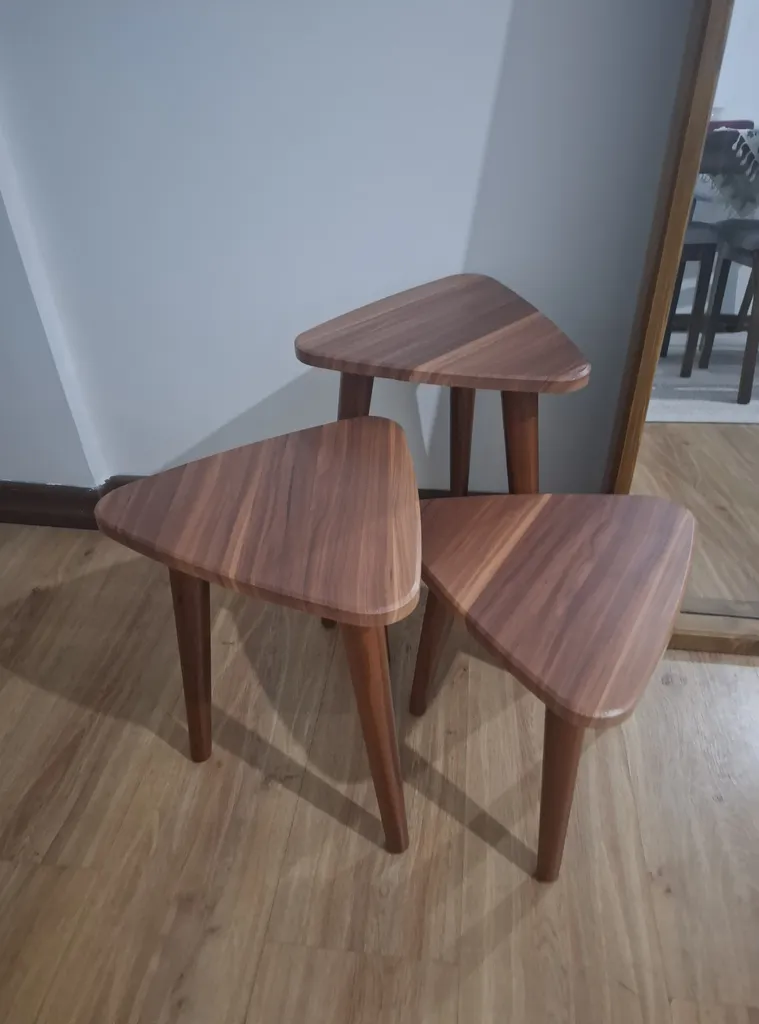 مسیح شیخ : علیرغم بسته بندی خوب زدگی جزئی لبه میز داشت که چیز مهمی نیست ، ابعاد میز جلو مبلی ۹۰ در ۴۸ و عسلی های کوچک ۴۵ در ۴۳ سانت است ، رنگ چوب زیبا و کیفیت کلی با توجه به قیمت قابل قبوله همین که یک سمت پایه میز میله نداره و پا راحت می ره زیرش یه حسن بزرگه که تو میزهای دیگه نیست