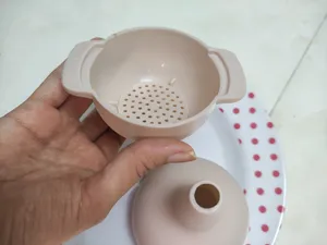 خیلی خیلی کوچیکه عملا بدرد نمیخوره و برای اسباب بازی بچه ها خوبه ولی تاشو بودنش خوبه رنگهاشم خوبه درکنار سه سایز قیف صافی داری که از دیجی کالا خریدم برای اینکه اندازه دستتون بیاد قرار دادم و عکس گرفتم