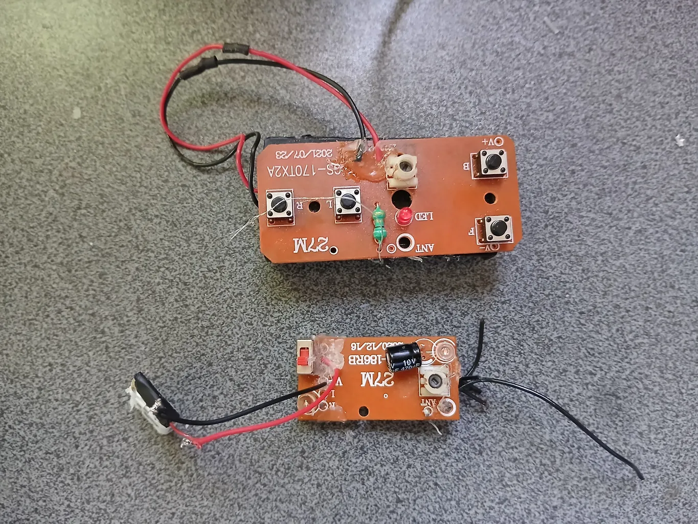 مصطفی محمدی ساعی : فرستنده و گیرنده رباتیک ؛ سلام قیمت را پایین بیاورید تا دانش آموزان علاقه مند هم بتوانند راحت خرید و تحقیق کار کنند. برای وصل سیم آنتن رو خودتون باید لحیم یا وصل کرد و باطری ۱۶۰۰ میلی امپر هم وصل کرد. برد گیرنده یک کلید قرمز کوچیک دارد که اگر درست وصل بشه چراغ روشن میشه و برد فرستنده هم ۴ تا کلید داره برای دو موتور با دور چپ و راست