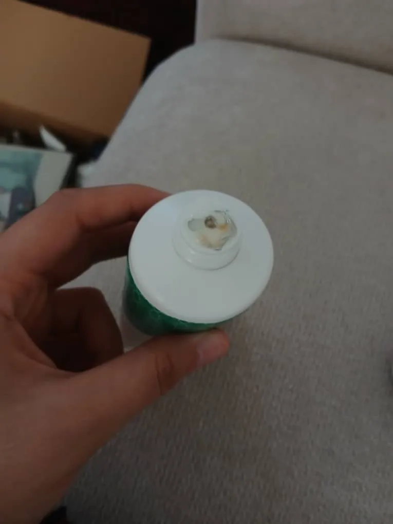 ژل بهداشتی ؛ روی کارتن محصول نوشته (بروشور داخل جعبه مطالعه شود) اما داخل جعبه بروشوری نبود، همچنین جعبه محصول چسبناک بود که بعد یکبار استفاده متوجه شدم این مسائل به علت پارگی که در عکس مشخص کردم هستش. احتمالا بخاطر همین فروشنده بروشور را برداشته چون پارگی باعث کثیف شدن بروشور و جعبه محصول شده، ترجیحا از فروشگاه عماد نگیرید