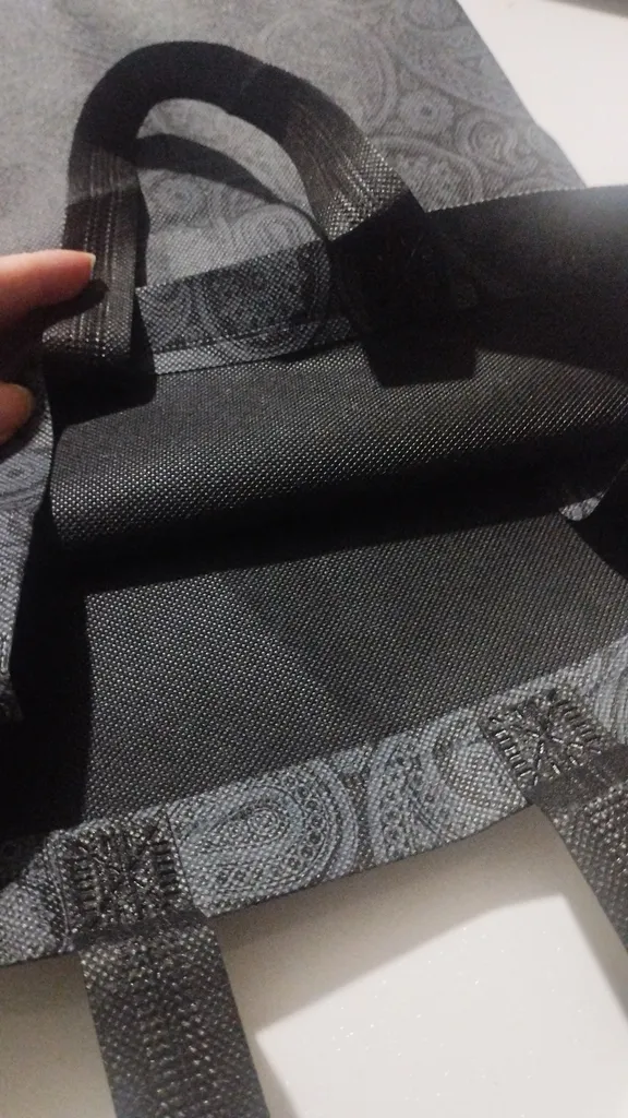 دسته ساک ارسالی با تصویر متفاوت است ،در تصویر ، دسته ساک از حلقه فلزی رد شده ولی. در کالای ارسالی دوخته شده