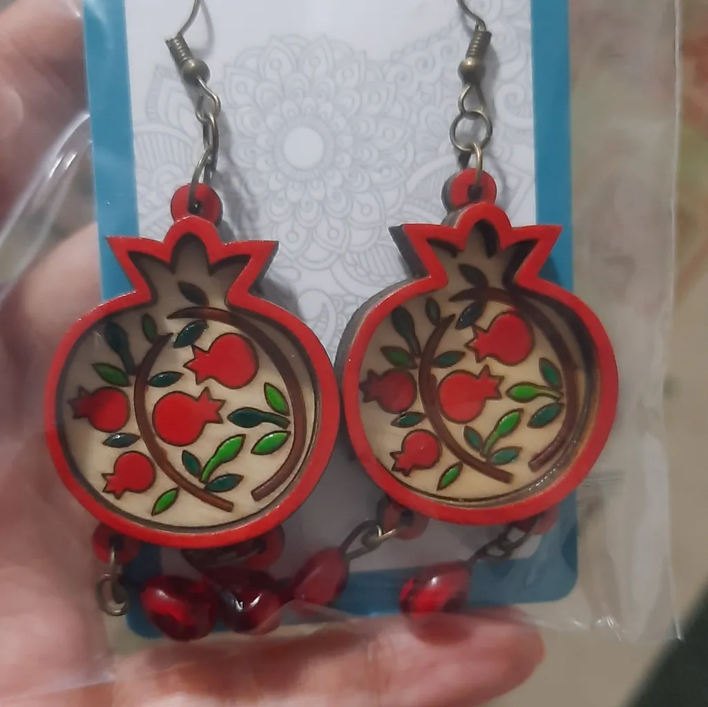 دقیقا دو تا دونه انار! ؛ یعنی دقیقا انگار دونه انارن و از عکس خیلی قشنگ تر هستند و خوش رنگ تر هستند. من خوب نتونستم رنگ قرمزش رو تو عکس خوب بگیرم فقط ای کاش زنجیرش یه جور دیگه بود کوچیک تر بود تا دونه انار ها بیشتر معلوم می شدن یا یک مدل دیگه بود ولی بازم واقعا دلنشین و خاص هستند دستتون درد نکنه خیلی خوش رنگ و دقیقا دونه انار من که پسندیدم. ممنون