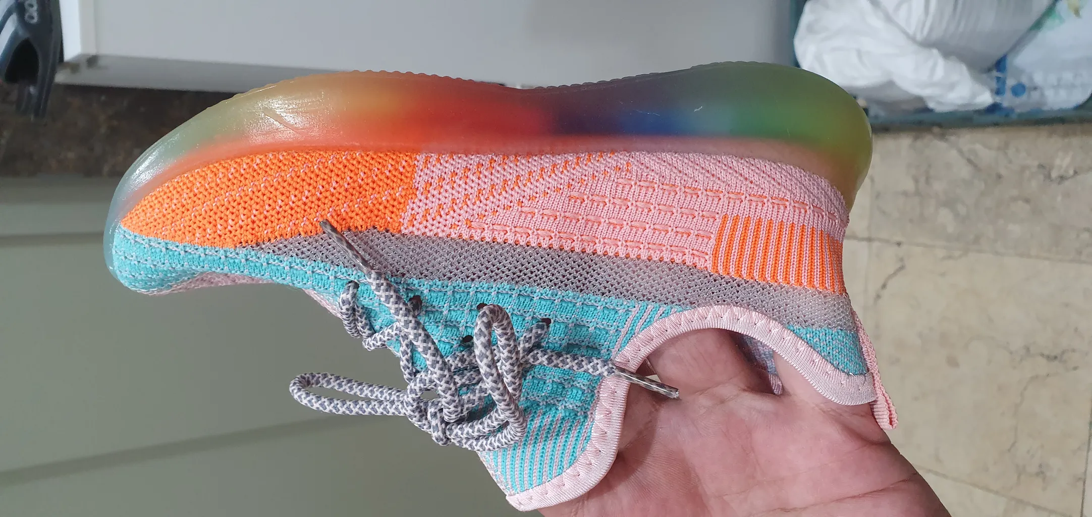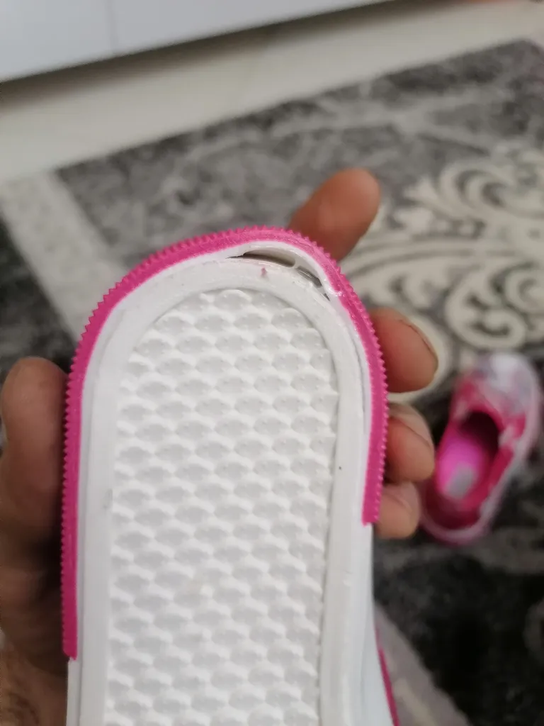 دخترم دفعه اول خواست داخل خانه امتحان کنه، اول کف کفش درومد و بعد پوسته پوسته شد، متاسفانه دیجی کالا مرجوعی قبول نکرد، باوجود اینکه همون روز تحویل و یه ساعت بعد تحویل حدودا درخواست مرجوعی زدم