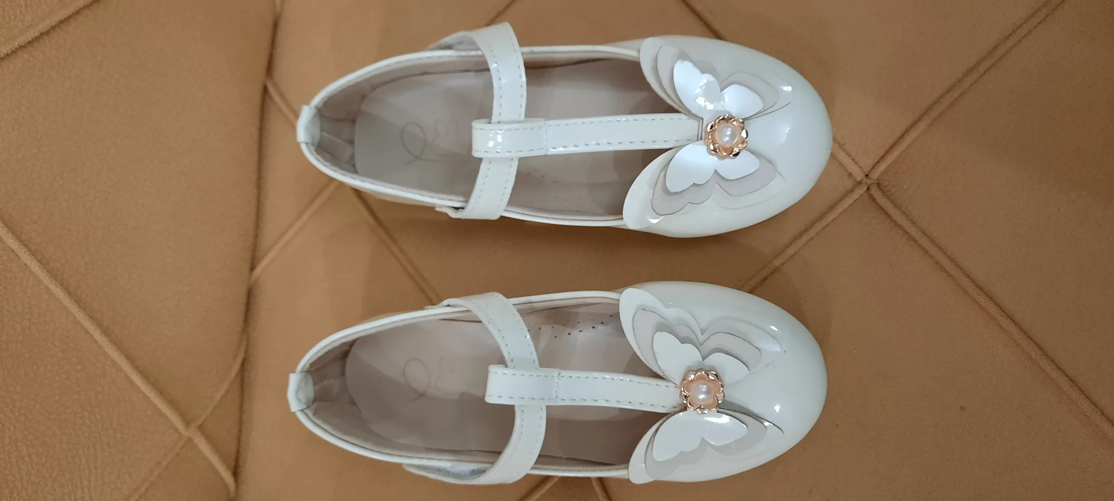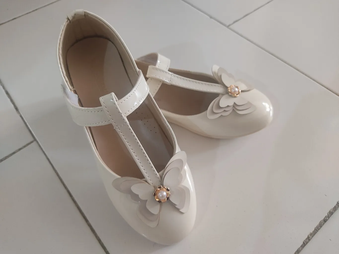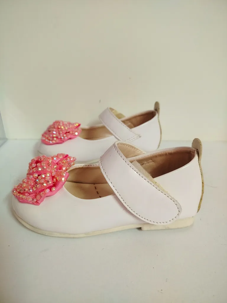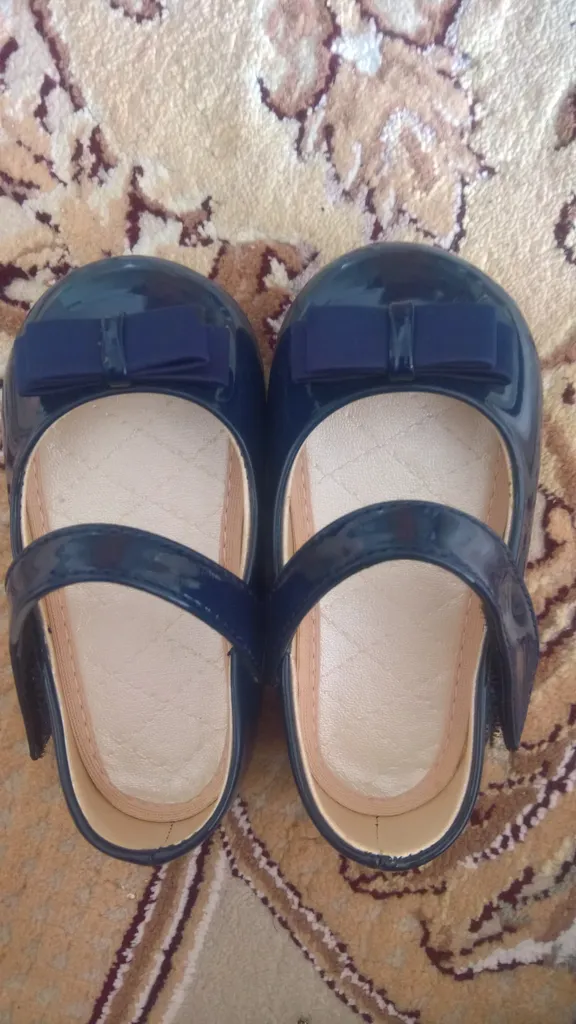 کفش دخترانه مدل پروانه و برچسبی ؛ جنسش خوبه سایز ۳۰ گرفتم و اندازه کف کفش از داخل ۱۸ و نیم سانت هست جلوی کفش گرد هست بدون پاشنه هست خیلی خشک نیست تقریبا نرم هست و خوبه