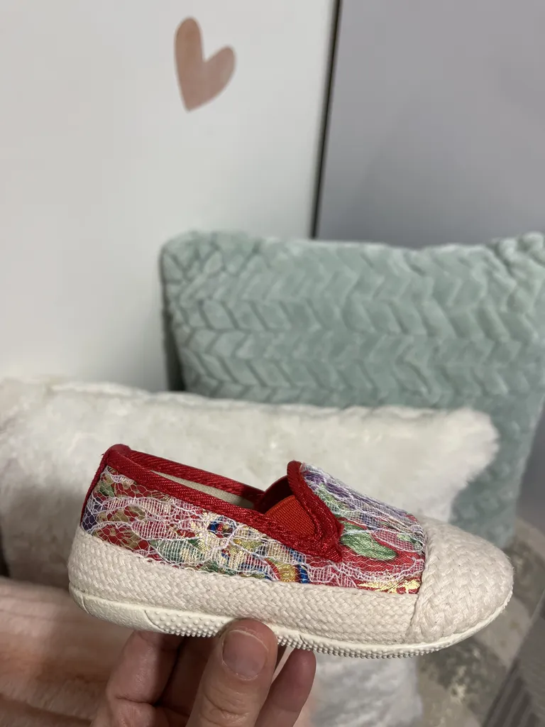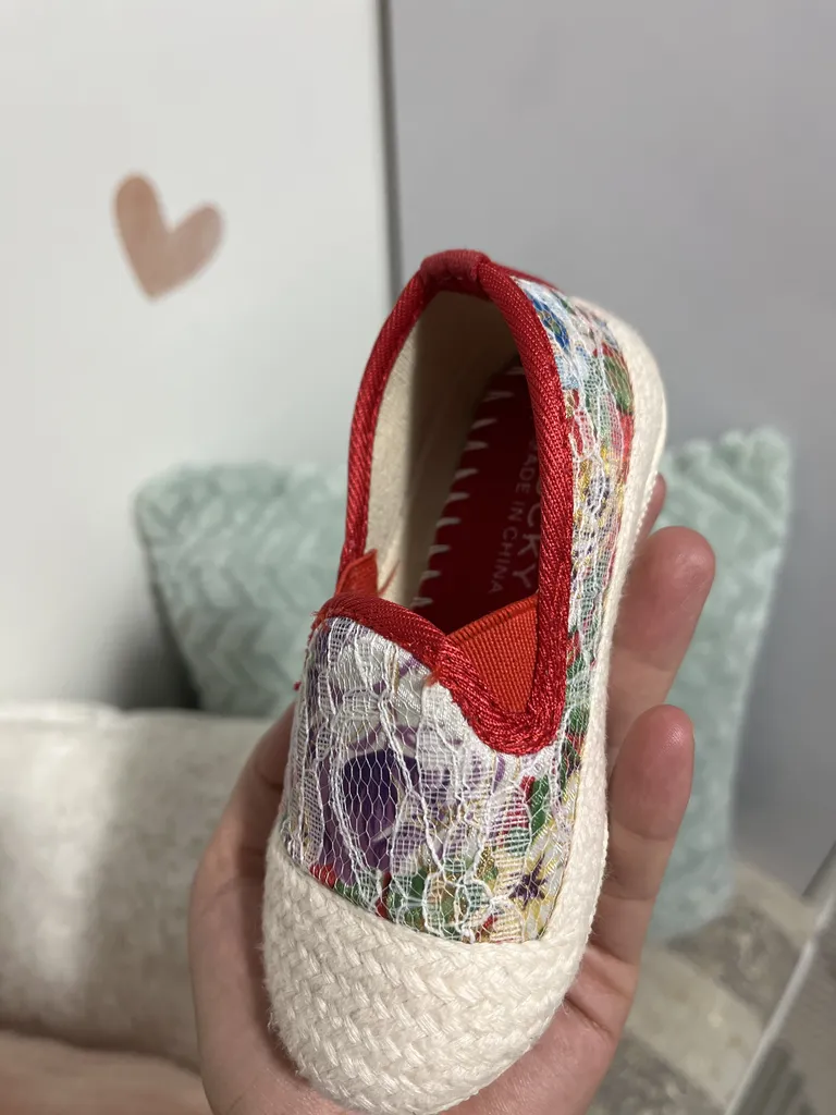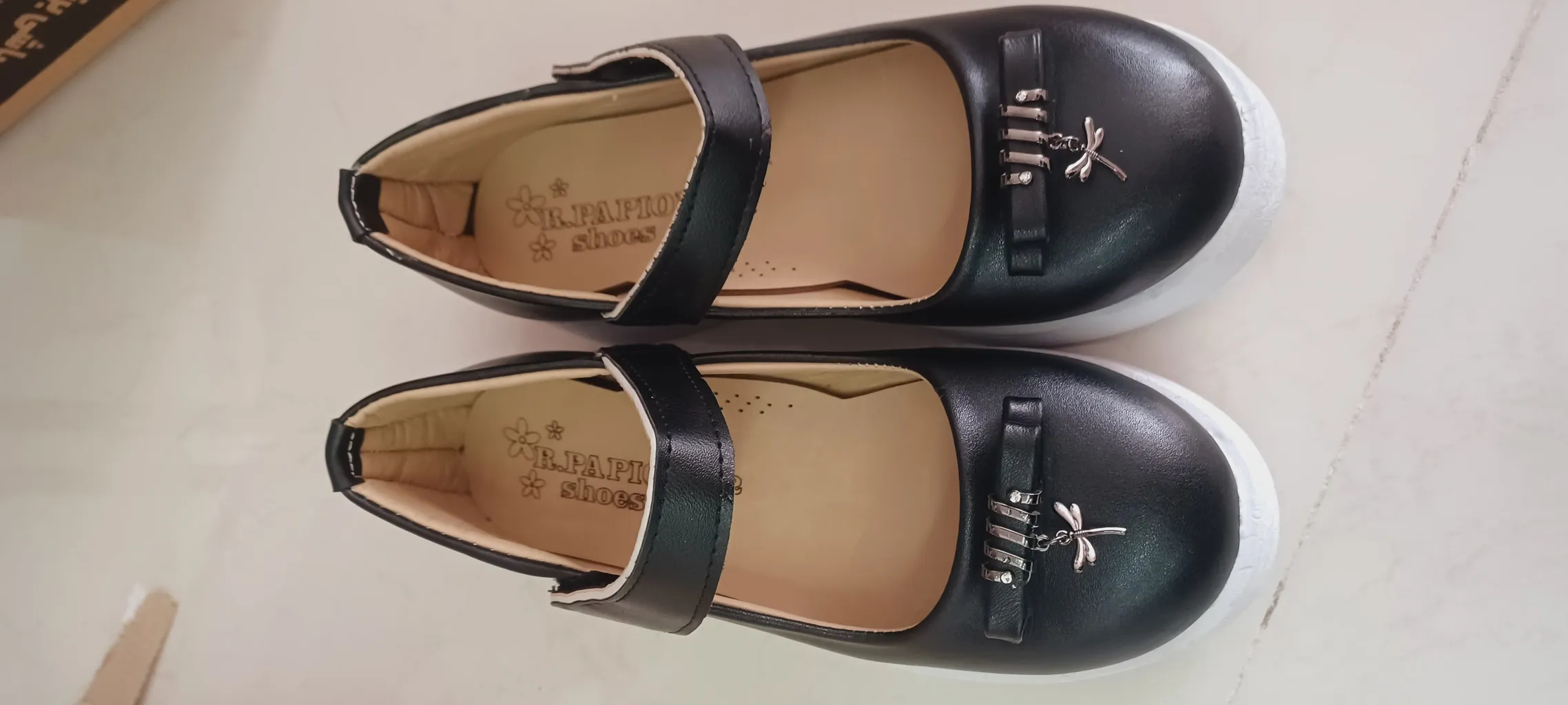 کفش دخترانه مدل پروانه و برچسبی ؛ جنسش خوبه سایز ۳۰ گرفتم و اندازه کف کفش از داخل ۱۸ و نیم سانت هست جلوی کفش گرد هست بدون پاشنه هست خیلی خشک نیست تقریبا نرم هست و خوبه