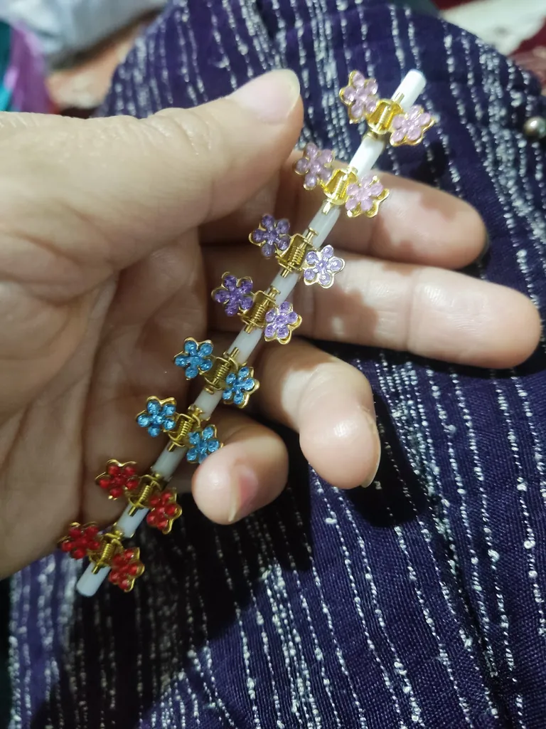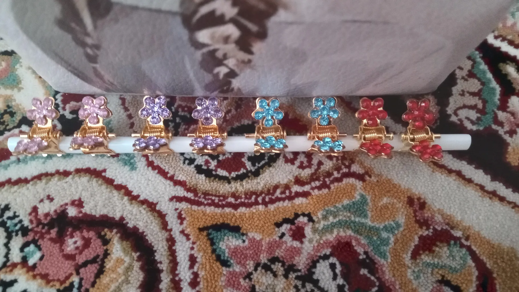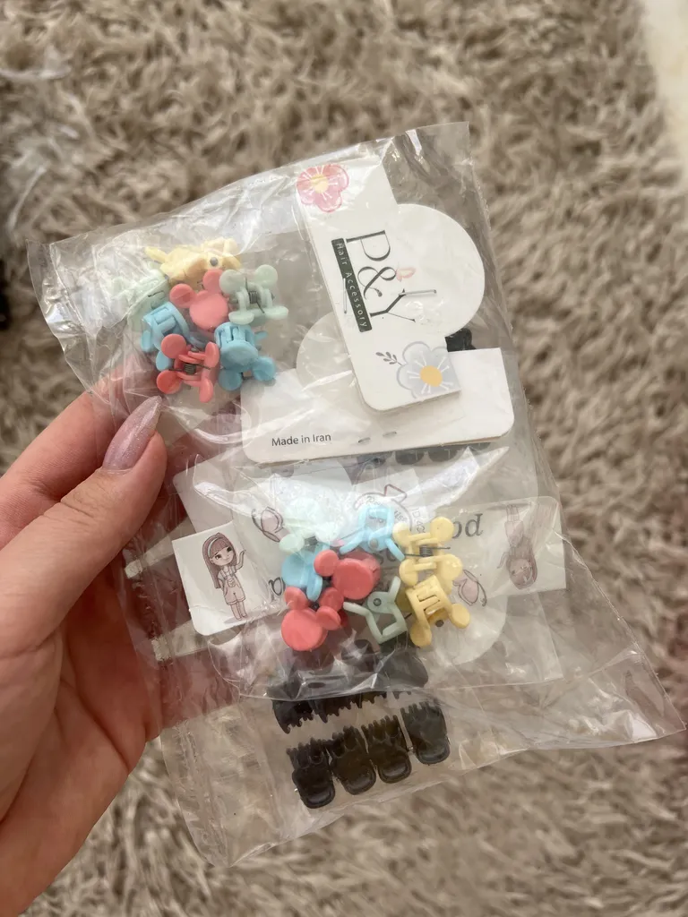 از این گیره موها زیاد هست،کلی گشتیم و طبق عکس و رنگبندی انتخاب کردیم.بعد فروشنده ی بازرگانی بادآشیان گیره ای فرستاده که رنگهاش مثل عکس ملایم نیست و هر جفتش هم یه رنگه.دیگه ارزش مرجوعی نداشت.عکسش رو هم گذاشتم