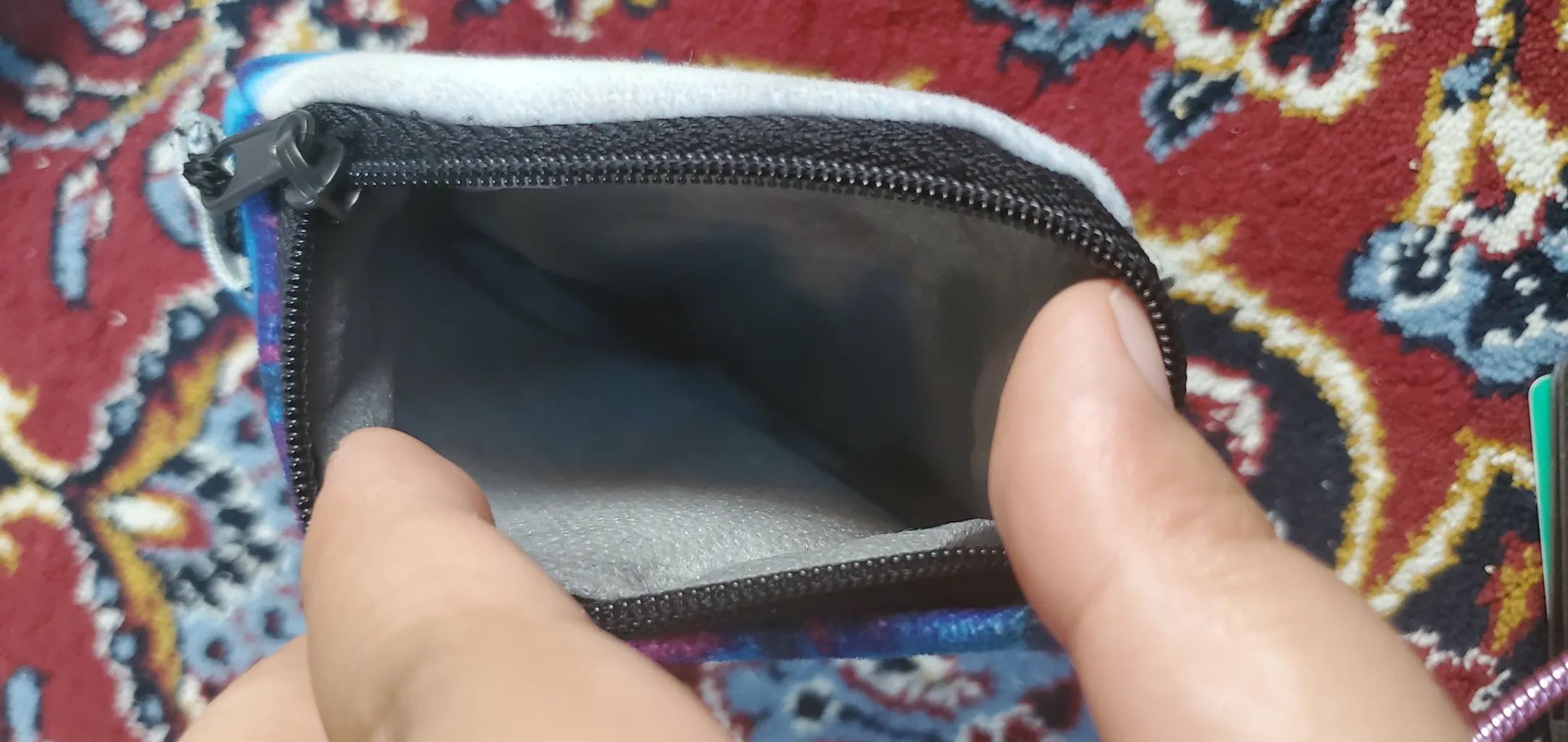 دقیقا شکل تصویرشه البته دوست داشتم که چون برای کارت ها استفاده میکنم داخلش هم فضای جداکننده برای هر کارت رو داشته باشه ولی چون طرحش خیلی دوست داشتنیه میشه از این ایرادش چشم پوشی کرد. من قبلا کیف رو دوشی هم گرفته بودم که تقریبا با هم ست شدن