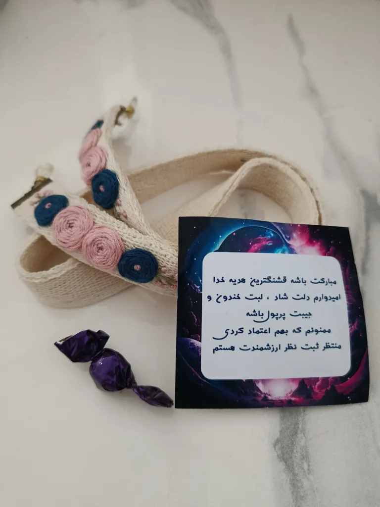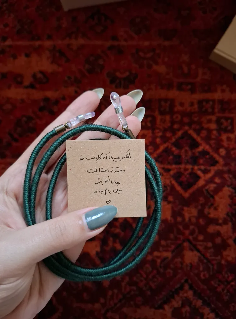 بند عینک خوبیه سبک و قشنگه اندازش سلیقه ایه اما برای من قدش مناسب بود گلدوزی روش قشنگیش رو چند برابر کرده بعنوان ی بندعینک سبک و کم حجم پیشنهادش میکنم👍