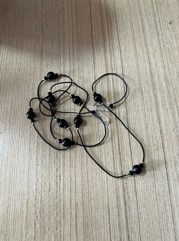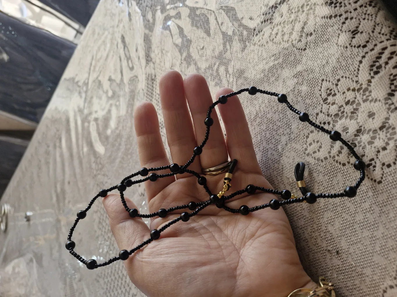 خریدار بدون نام : من از این فروشگاه بهشت مینا چند تا کالا سفارش دادم و هیچکدوم حتی یک درصد هم شباهتی به عکس اصلی نداره ، جنس بند ارسالی کریستال هست که در تصویر منجوقه ومحل اتصال بند رو گره زدن و بست نداره وطول نخ در وسط بند عینک چند گره داره ، عکسش هم میزارم ببینین