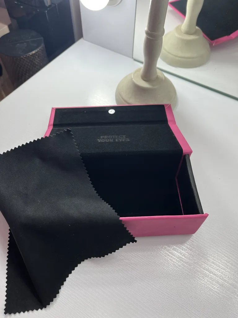 این کیف عینک رو سفارش دادم،فکر میکردم فقط صورتی رنگ باشه،ولی برام رنگ طوسی ارسال کردن،طیف زیبایی داره رنگش با این که صورتی نیست و من خیلیییی دوستش دارم و واسه همین مرجوعش نمیکنم و البته یه هدیه ی خشکل هم برام فرستادن همراه با کیف که من قلب قلبی شدم حقیقتش😍😍😍😍خیلییییی دوستشون دارم و البته عکس هم براتون میزارم