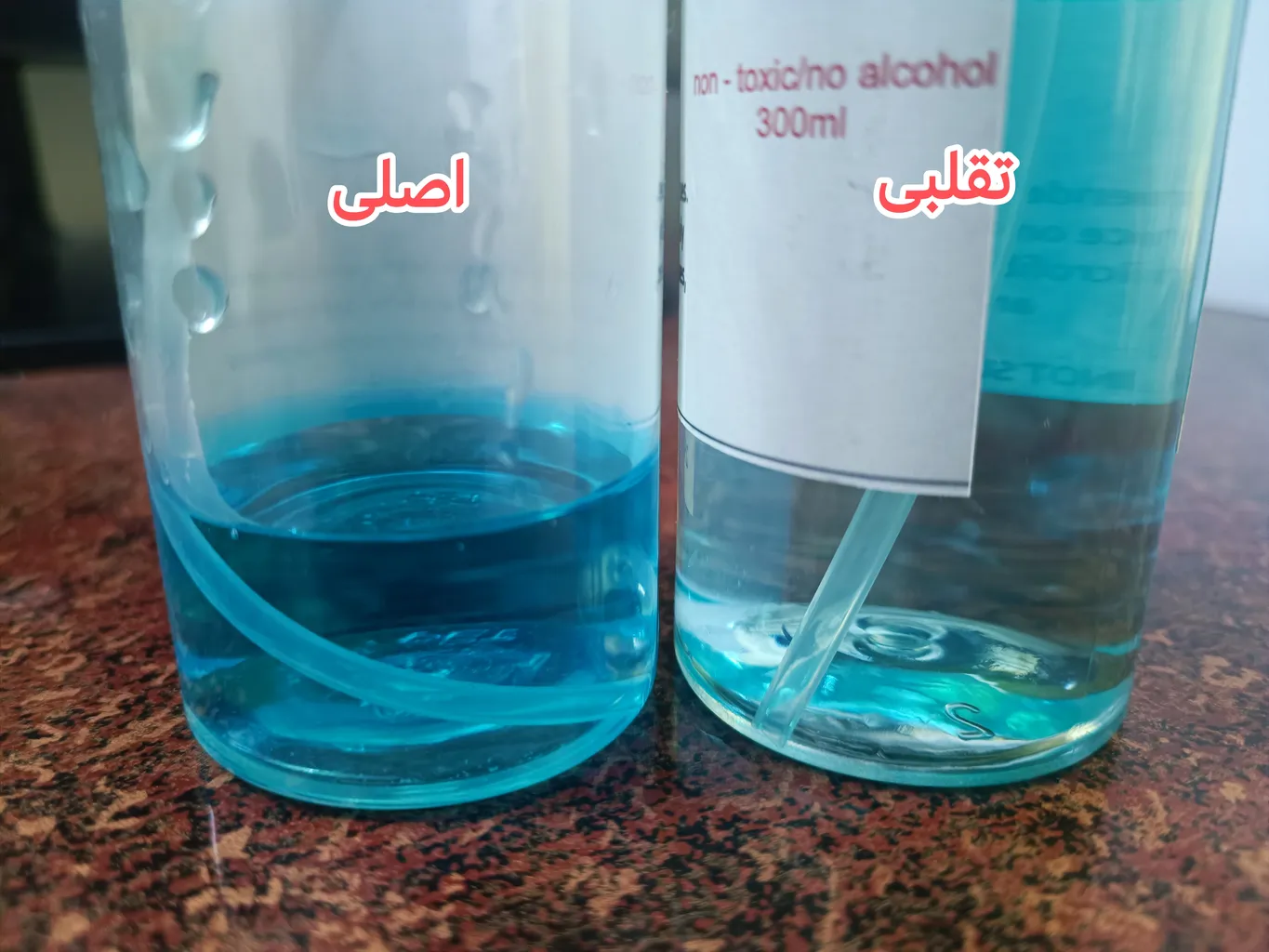 حتی رنگش مایعشم فرق داره و نسبت به اصلیش کمرنگ تره