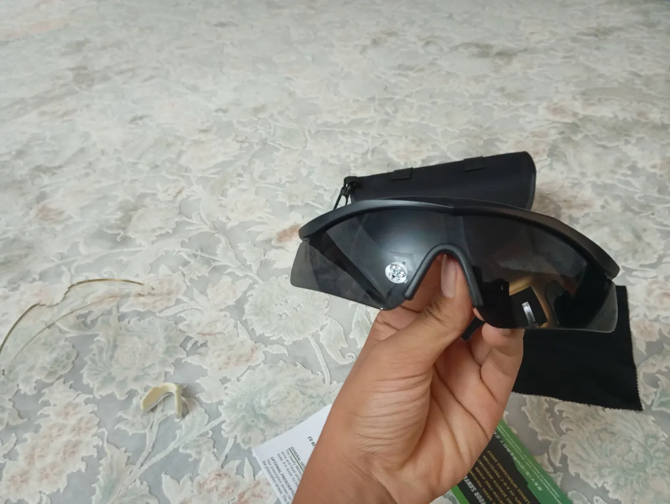 - ⬤ دستمال تمیزکننده : دستمال تمیزکننده لنزها یکی از لوازم جانبی مهم برای حفظ کیفیت دید عینکهای ورزشی است. خریداران به کیفیت بالای دستمالها و قابلیت تمیز کردن مؤثر لنزها اشاره کردهاند. این دستمالها معمولاً نرم و ضد خش هستند و به راحتی میتوانند لکهها و اثرات چربی را از روی لنزها پاک کنند. با این حال، برخی کاربران به این نکته اشاره کردهاند که دستمالها ممکن است پس از چند بار شستشو کیفیت خود را از دست بدهند و نیاز به تعویض داشته باشند.