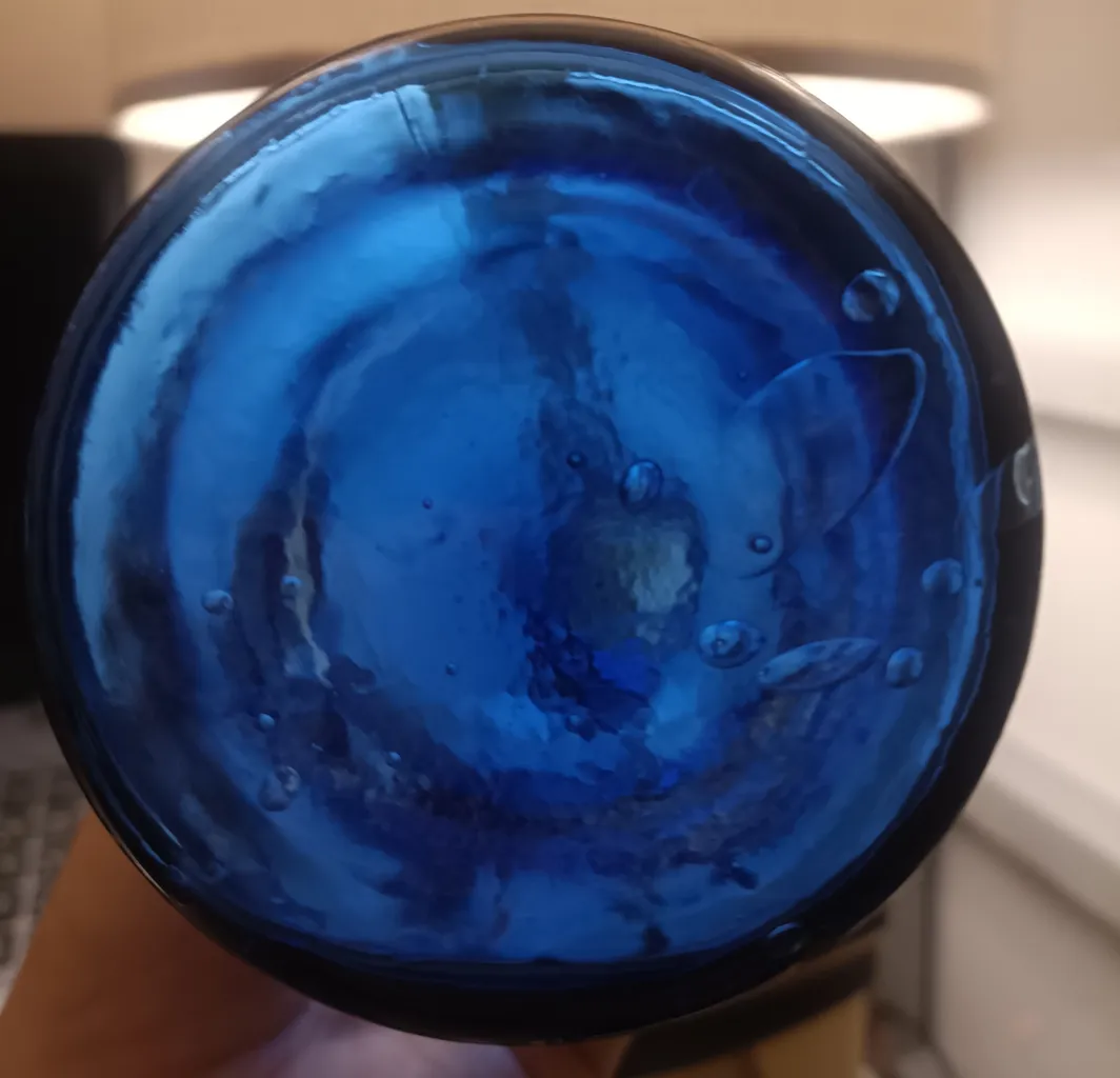 ضخامت شیشه عالی و رنگ آبی کبالت عالی ای داشت که اصل بود