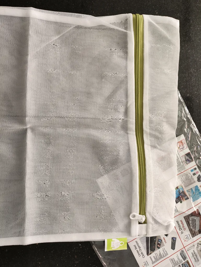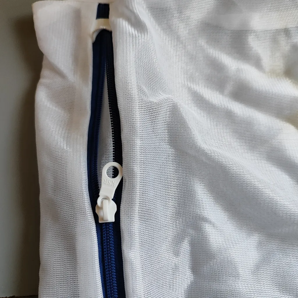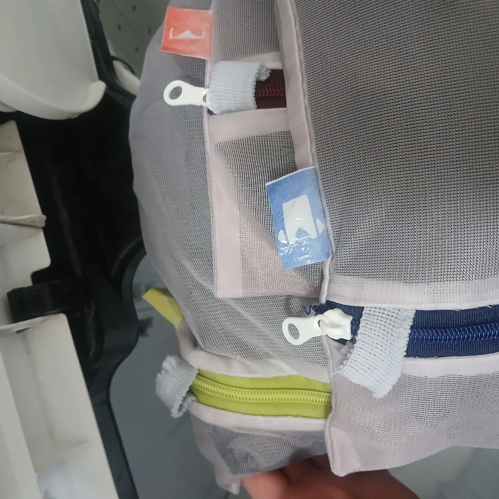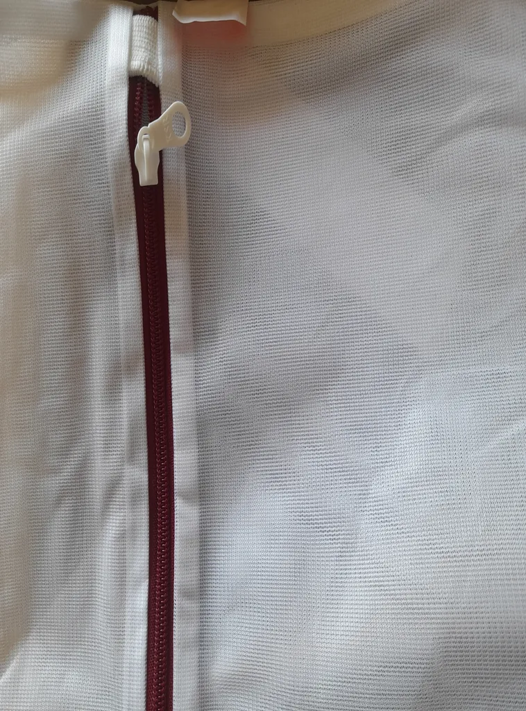 دقت کنید که قبل از قرار دادن تو لباس شویی حتما زیپشو از اون مانع انتهای زیپ رد کنید که یه موقع باز نشه. باز تو عکس هست.