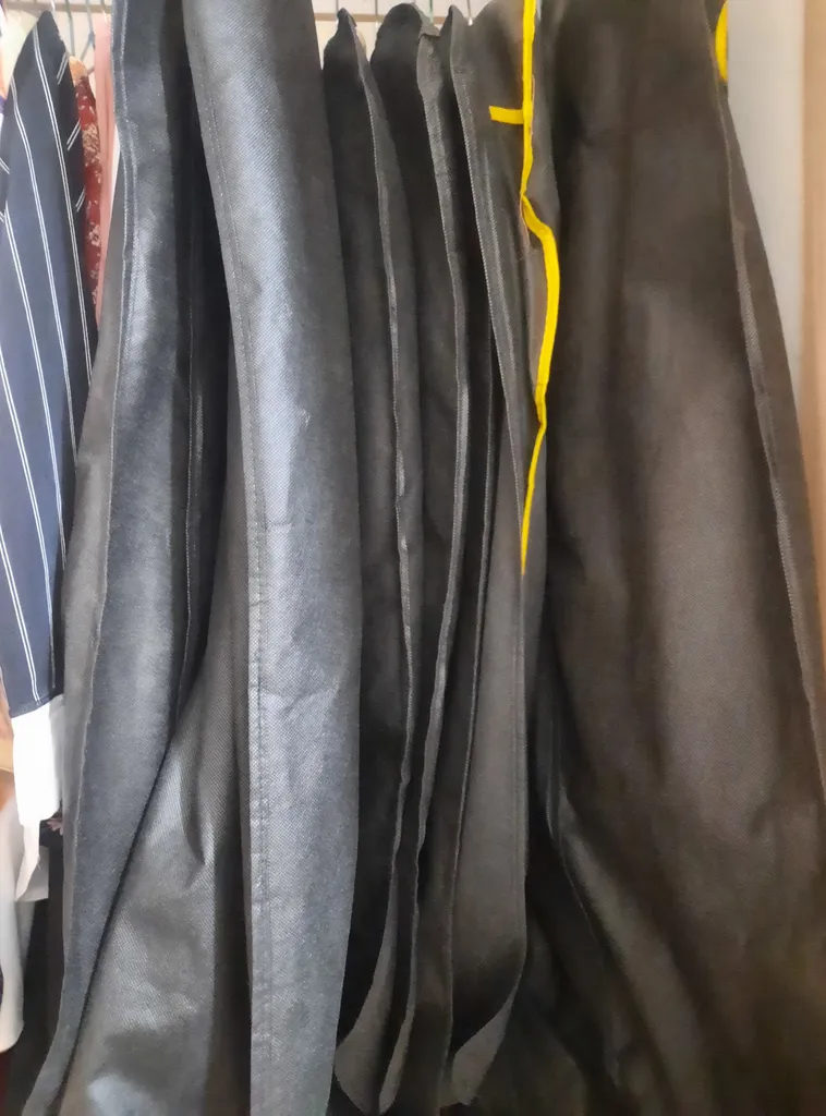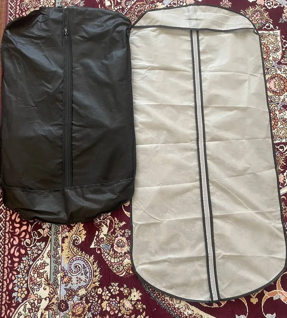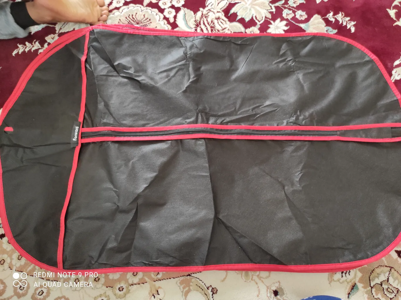 خریدار بدون نام : دیروز به دستم رسید، رنگ مشکی سفارش دادم، دقیقأ شبیه تصویر بود، کاور مشکی با نوار قرمز، جنس کاورا خوبه، زیپ محکمی داره، و قد کاورها برای لباس مجلسی بلند عالیه،بسته به بلندی رگال یا کمد میشه یک لا یا دو لا آویزونش کرد ممنون از فروشنده محترم