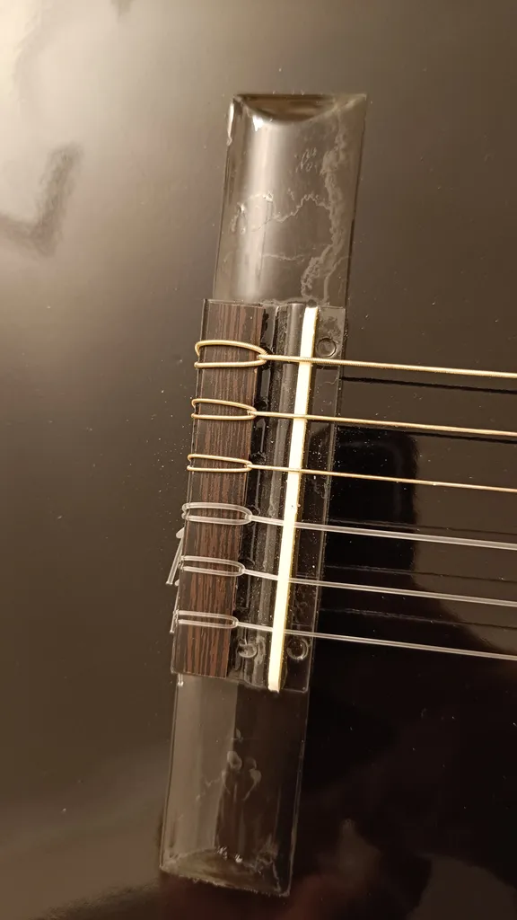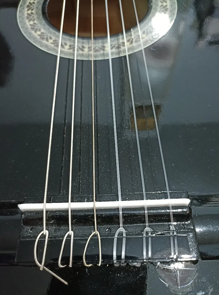 - ⬤ کیفیت مواد سیم : سیمهایی که از مواد با کیفیت ساخته شدهاند، معمولاً صدای بهتری تولید میکنند و خریداران به این نکته اشاره کردهاند که سیمهای نایلونی و فلزی با کیفیت میتوانند تأثیر زیادی بر صدای گیتار داشته باشند.