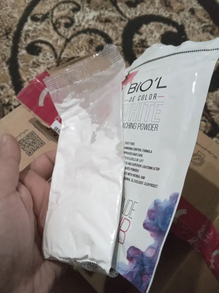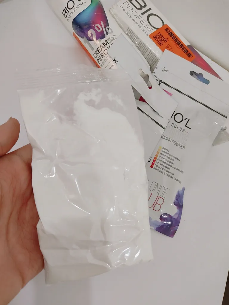 پودر دکلره ؛ همیشه از این مارک با اکسیدان 6% استفاده میکنم ، برای دکلره کردن بدنم