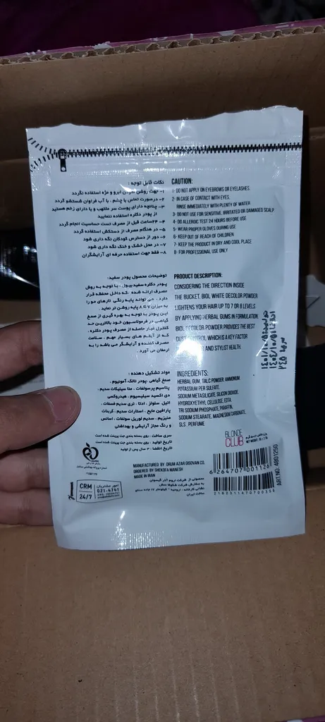 شقایق درویشوند : به عنوان دکلره بدن عالیه ؛ بسته بندیش خوب بود همون ۲۰ گرمه رنگ پودرش آبیه بخاطر همین خاصیت ضدقرمزی داره و از پودرهای سفید قوی تره فقط باید زمان کمی روی پوست بمونه حدودا ۵ الی ۷ دقیقه بیشتر بمونه پوست متورم میشه ازاکسیدان ۶ درصد استفاده کنید بوش هم خیلی تنده عکسم گذاشتم که راحتتر انتخاب کنید من راضی بودم