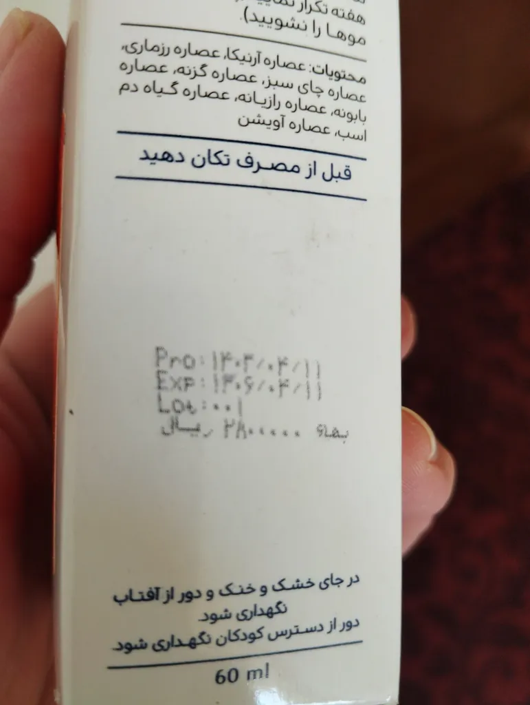 نظر و تجربه خرید لوسیون گیاهی تقویت موی بانوان سینره حجم 60 میلی لیتردر تاریخ ۱۳ آذر ۱۴۰۳