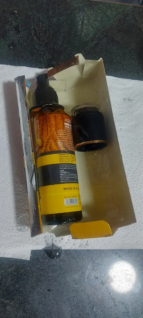 آرش کرمی : دقیقا نصف روغن ریخته بود داخل جعبه و بسته های اطرافش رو هم کثیف کرده بود، جعبه رو که باز کردم متوجه شدم اصلا در محصول بسته نشده بوده،