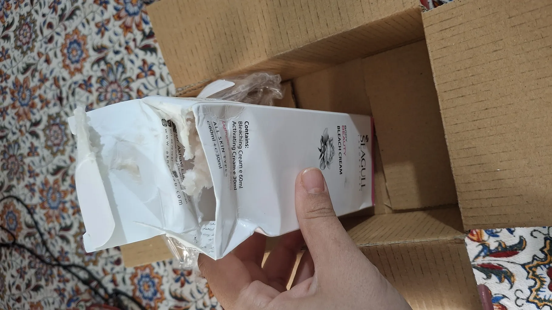 کرم ها هر دو پلمبش باز شده بود ریخته بود تو سرشون حجمشون هم کم بود انگار کرم بی کننده استفاده شده بعد برای من همین باز شده استفاده شده رو فرستادن اصلا راضی نیستم