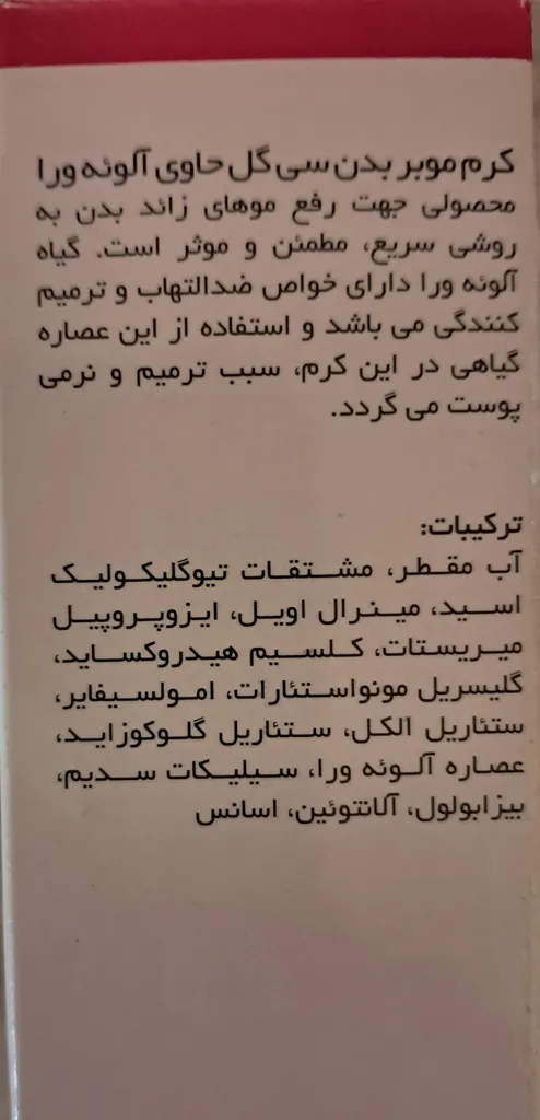 این کرم رو من شاید حدود ۱۴ ساله که دارم برای صورت و موهای کرکی بدن استفاده میکنم، واقعا عالیه. این سری دیدم سی گل بسته بندی رو تغییر داده و با یه بسته بندی جدید و جذاب روبه رو شدم. خیلی خوشگل شده و همچنین بروشور کاغذی رو حذف کردن و از کیو آر کد استفاده کردن. من همیشه به این موضوع هم فکر میکردم که چرا این همه کاغذ مصرف میکنن برای بروشور و از این حرکت هم خیلی خوشحال شدم و خوشم اومد.