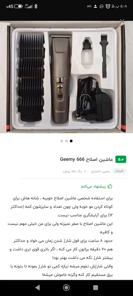 - ⬤ قابلیت اصلاح موهای خیس : برخی خریداران به قابلیت اصلاح موهای خیس اشاره کردهاند که برای راحتی بیشتر در استفاده بسیار مفید است و به آنها کمک میکند تا در زمانهای مختلف از دستگاه استفاده کنند.