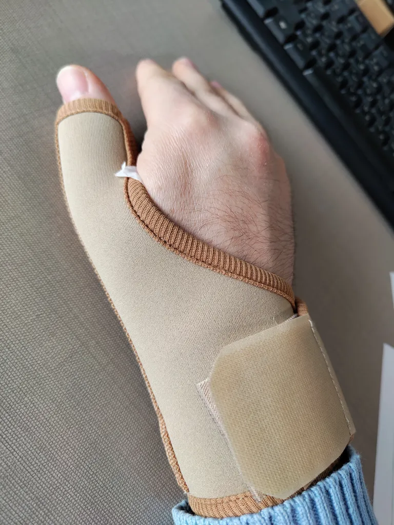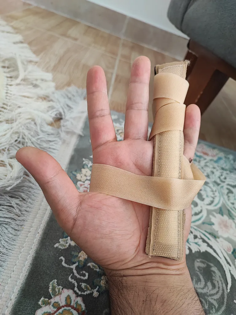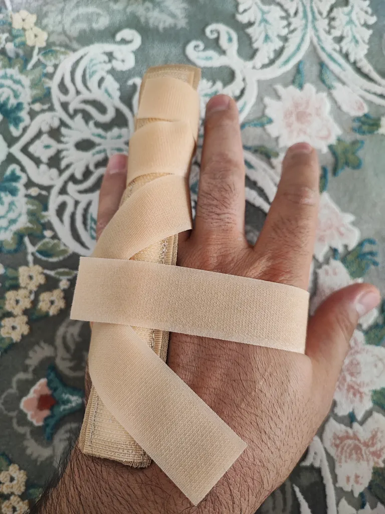 انگشت شست کاملا فیکس نمیشه ولی اینکه حرکتش رو تا حدود زیادی مهار میکنه خوبه. جنسش نرمه و آتل از جنس آلومینیوم داره.