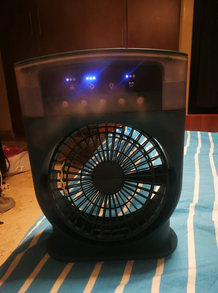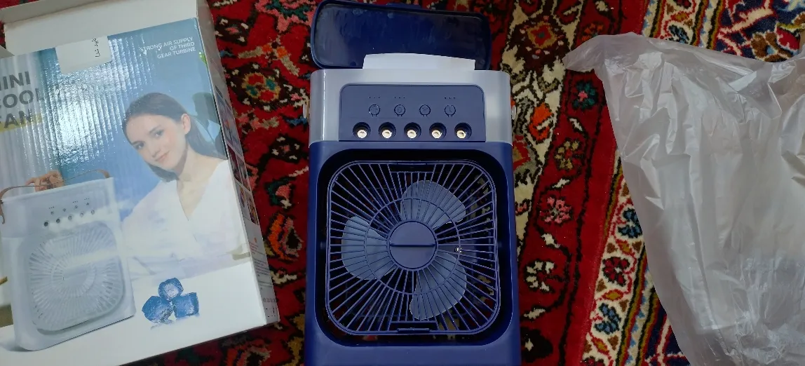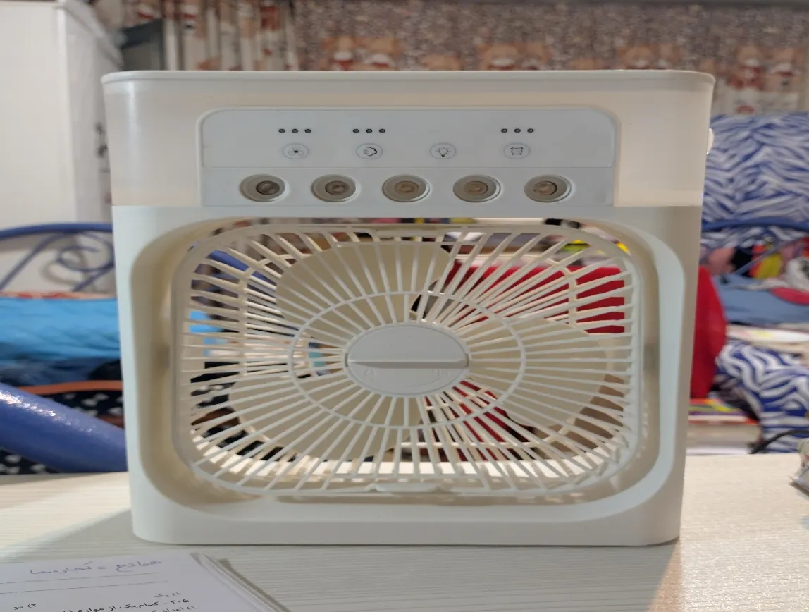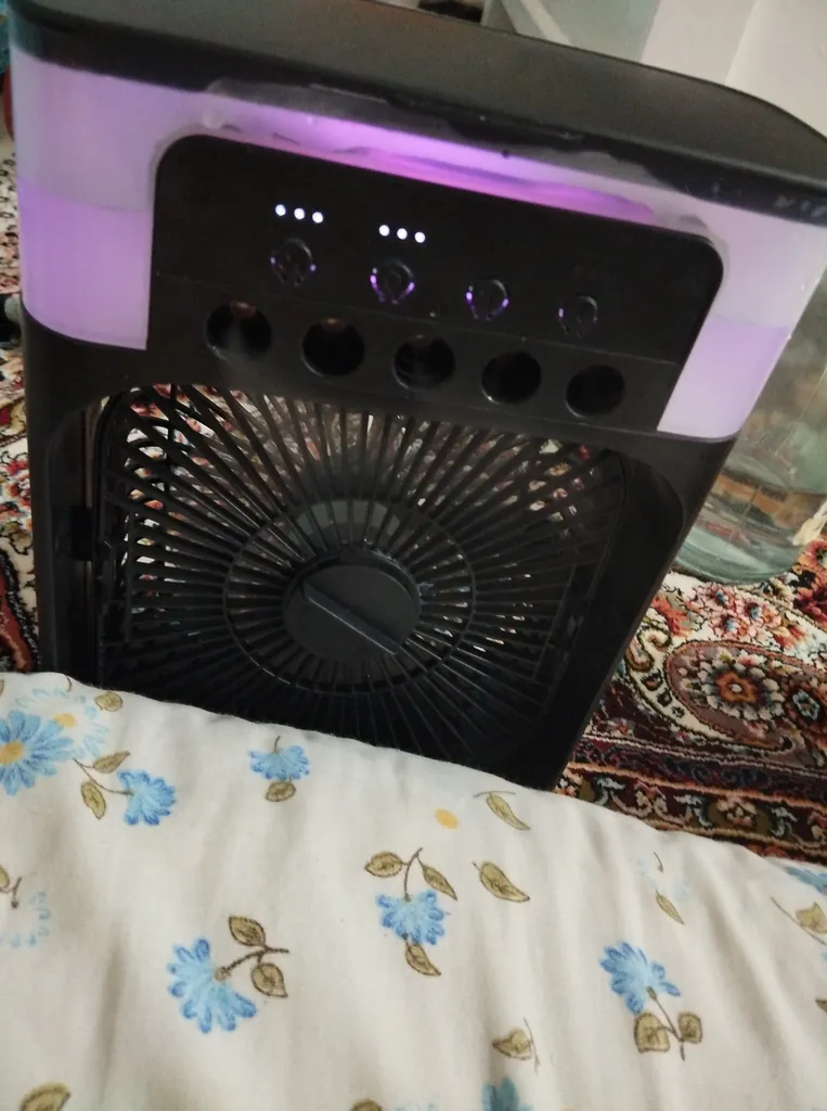 حتما از کابل و آداپتور بالای ۲ آمپر استفاده کنید و برای پر کردن منبع آبش هم از آب معدنی یا آب شرب که بیرون میفروشن استفاده بشه. قدرتش خوبه با نازل بخار کاملا خنک میکنه ولی چون سایزش کوچیکه باید نزدیکتون باشه تا خنک بشید. نازل بخار بدون روشن کردن پنکه هم کار میکنه و میتونه به عنوان بخور سرد استفاده بشه.