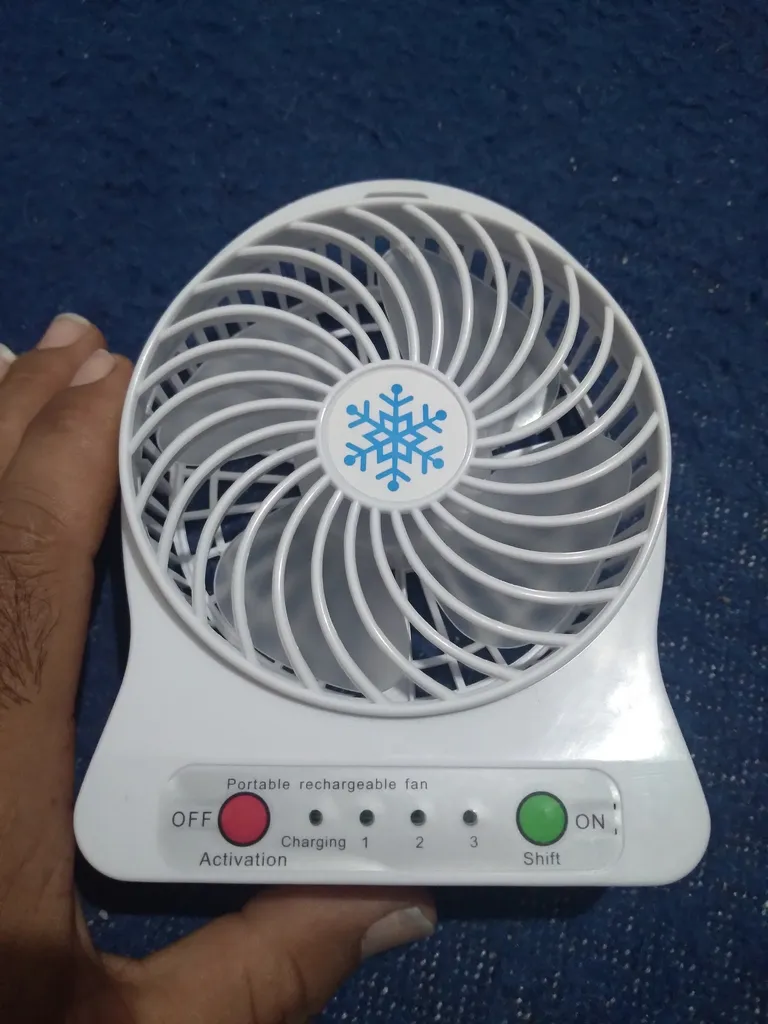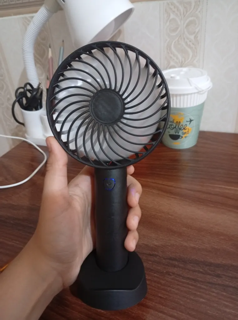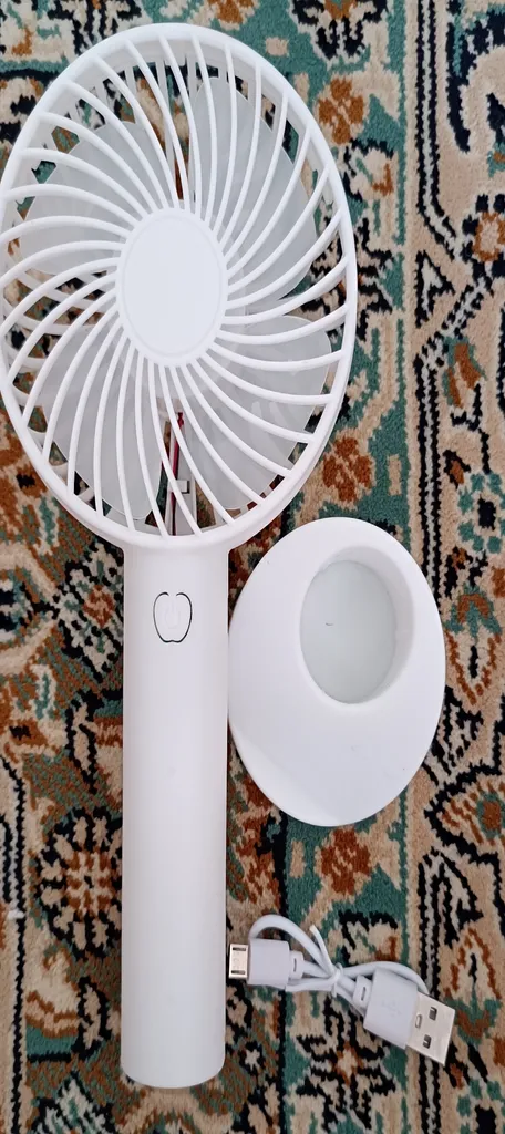 فاطمه شمس الدین قطرم : زیاد ازش استفاده کردم واقعا زیباست و اندازه خوبی داره و باد خوبی هم میزنه سه حالته است و سیم شارژر هم داشت برای زمان قطعی برق یا جاهای شلوغ که گرمه بسیار مناسبه . من برای نوزادم خریدم. وقتی درحال شارژ هست چراغ قرمزش چشمک زن هس و وقتی فول شارژ شد چراغ قرمزش یکنواخت میشه .چندین بار در زمان قطعی برق تست کردم اگر فول شارژ باشه با حالت دو (متوسط) بیش از دو ساعت میره . بادش هم عالی و خنکه و یه پایه داره که میشه روی میز یا زمین قرار داد . برای مکان های شلوغ مثل مساجد و حسینیه ها هم خوبه . وقتی روشنه یه نور آبی هم داره ولی نمیشه به عنوان منبع نور ازش استفاده کرد . عکس میذارم ببینید کیفیتش واقعا عالیه دست سازندش دردنکنه.