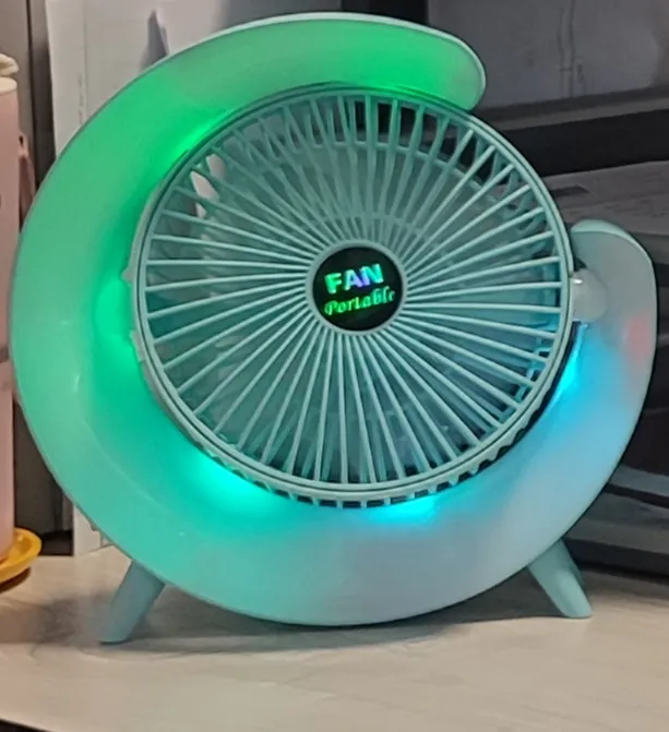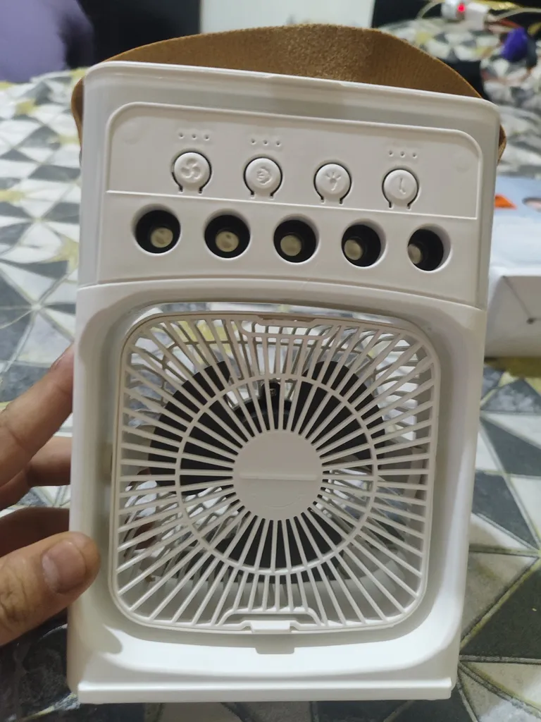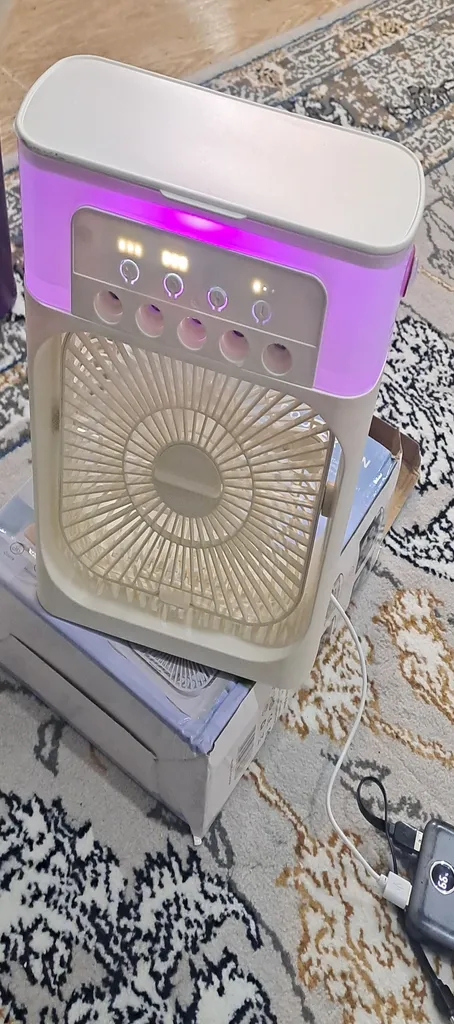 پنکه کولر سبک و خوش ساخت و دارای باطری قابل قبول و تایمر و نسبتا صدای کمی زیاد اما در قدرت اما دارای rgbچندان جذاب و پور نوری نیست در این مدل اما در کل گجت جالبیه چون بدون پاور بانک اگر فول شارژ باشه به راحتی بالای دو ساعت کار می کنه البته با دور ملایم،من رنگ سفید را سفارش داده بودم که متاسفانه من متوجه نشدم چرا یک ردز پس از زمان تعیین شده یکطرفه لغو کرد سفارش منو ،به طور حتم با رنگ سفید همین مدل پنکه مه پاش شارژی نور rgbبیشتر پودر شب جلوه می کنه و شفافتر چون مدل دیگری که سفارش دادم رنک سبز کله غازی و خیلی تیره می باشد.معملا گجتهای رنگ سفید رنگها و نورها چشم نواز ترند