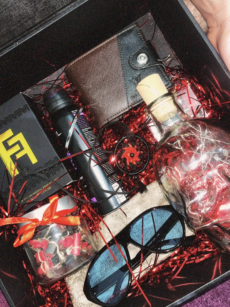و این باکس را با شکلات و انگشتر و پوشال و اسپری پر کردم