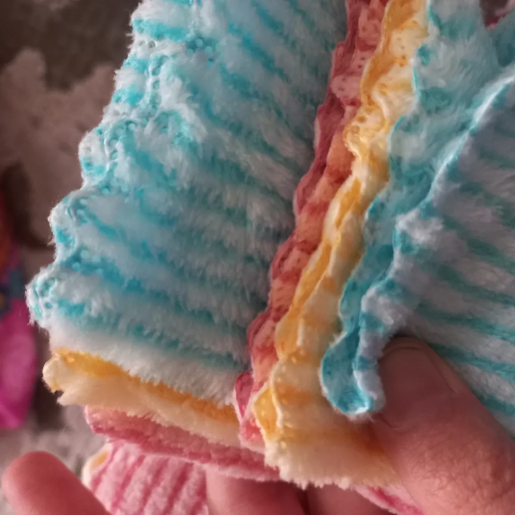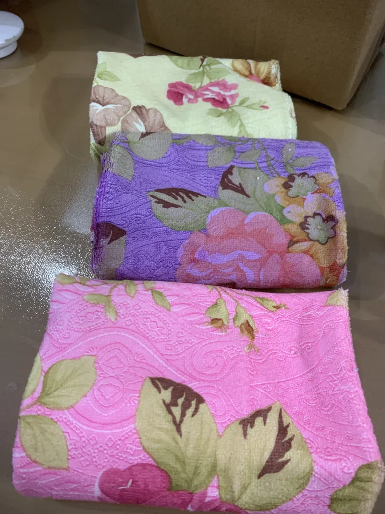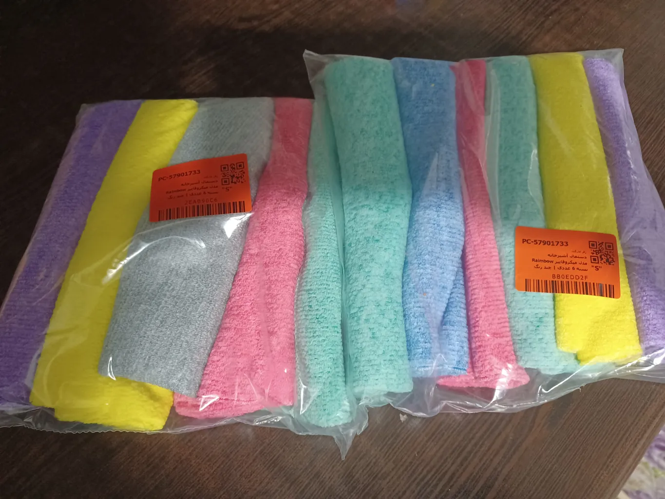 زهرا حسنی : دستما ۶تایی ؛ انقدر خوبن که باورتون نمیشه.اول که باز کردم فکر کردم ابگیر نیست و پرز میذه اما وقتی خیس کردمو ابگیری کردم متوجه شدم این دستمال خیلی بهتر از جادویی هست و واقعا خوشحال شدم رنگبندی هم عالی