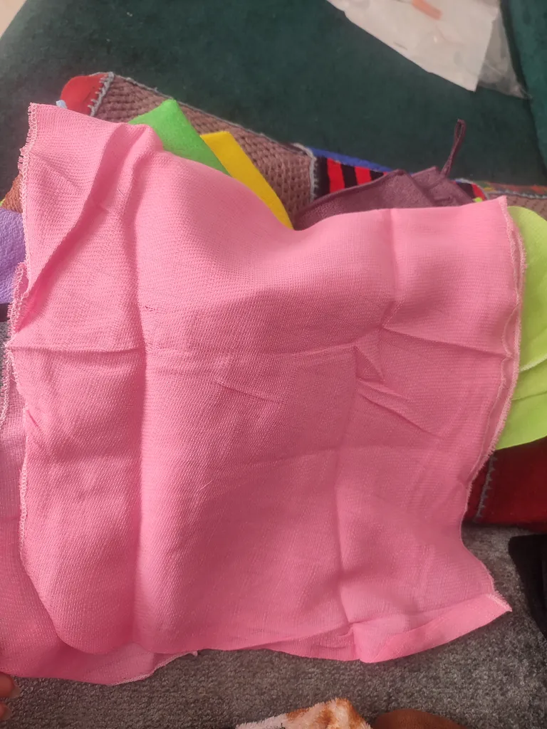 خریدار بدون نام : قشنگه ، جنسشون هم خوبه جنسشون حوله ایه ، من رنگاشو خیلی دوست دارم رنگای پاستیلیه قشنگیه. ۵ تا رنگه . من چون خودم با توجه به عکسای بقیه خرید میکنم ، عکس میزارم بتونید راحت تر انتخاب کنید