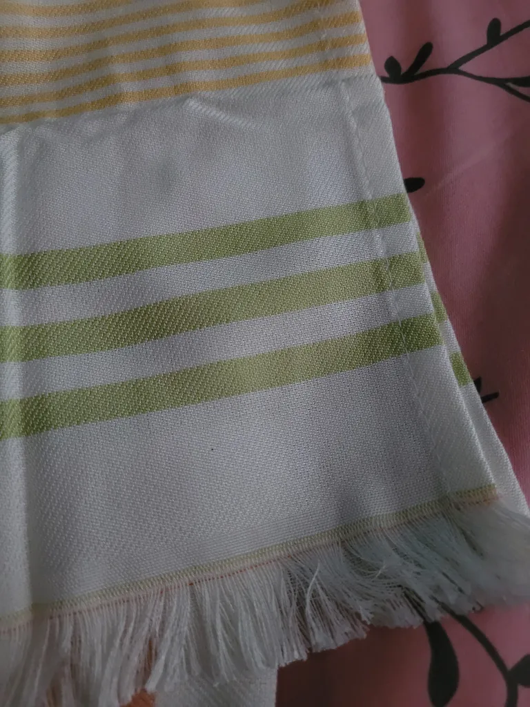 خیلی بهتر از اون چیزی بود که فکر میکردم . دوختش تمیزه و نرمی فوق العاده ای داره . دلم نمیاد تو آشپزخونه استفاده ش کنم . سه تاشو جای دستمال یا حوله مسافرتی بین خودمون تقسیم کردم و سه تای دیگه رو قایم کردم . کیفیت دستمال عالیه و قدرت جذب آب فوق العاده ای داره . سایزش هم خیلی خوبه و طرح قشنگی هم داره . قیمتش هم مناسبه