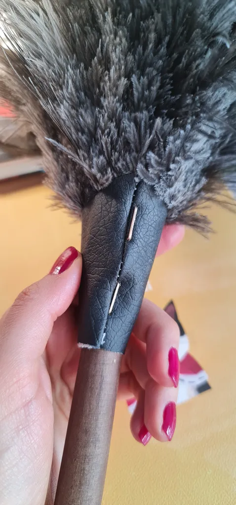 ناراضی بودم از خریدش ؛ دسته بی رنگ و چوب خالی ، باکش پنج سانتی پر ها رو بسته بود رو چوب خالیه رنگ نشده ، یه منگنه هم زده بود روش ، به حالی که توی عکسش چوبش قهوه ایی سوخته است با یه قالب مشکی پلاستیکی آب بندی شده و محکم پر های رو به دسته چوبی بسته ولی چیزی که دست ما رسید یه جنس بده بدرد نخور بود