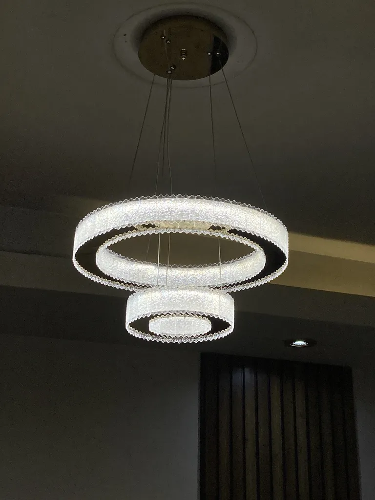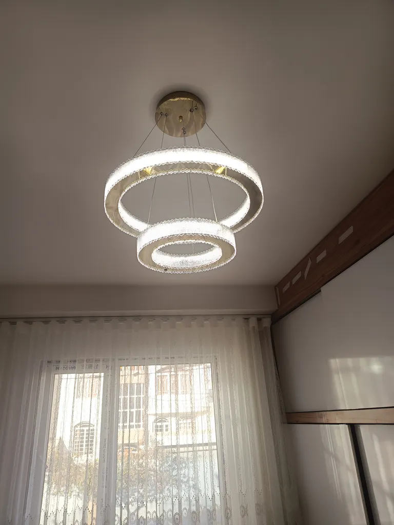 - ⬤ لوستر و چراغ آویز : این ترکیب به عنوان یک عنصر تزئینی و نوردهی در فضاهای بزرگ استفاده میشود. خریداران به زیبایی و طراحی خاص آنها توجه دارند. مزیت آنها نوردهی بالا و جلوه زیبا در فضا است، اما نصب سخت و وزن زیاد آنها میتواند معایب محسوب شود.