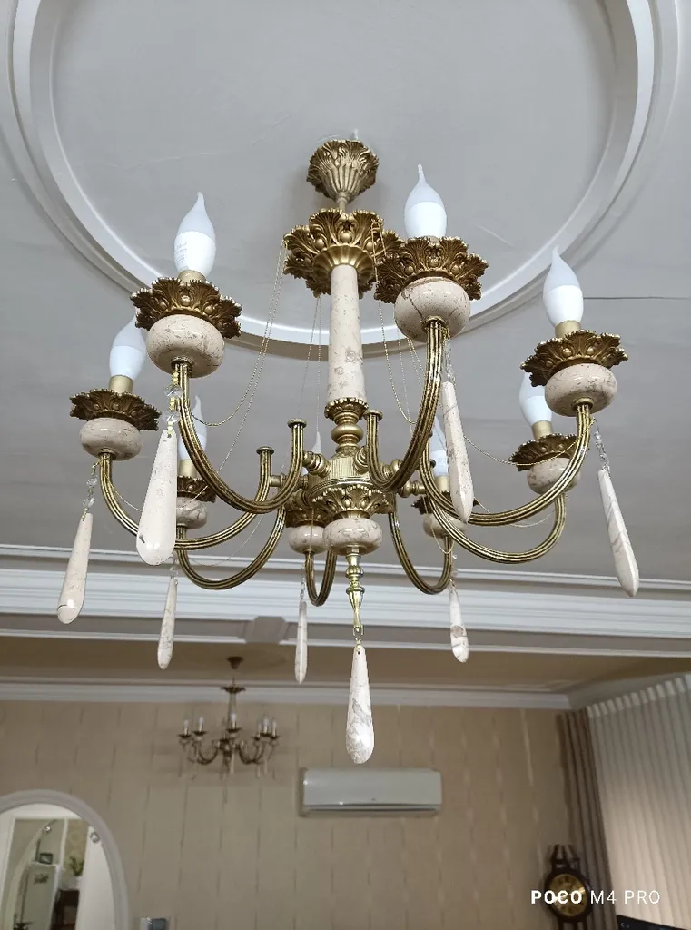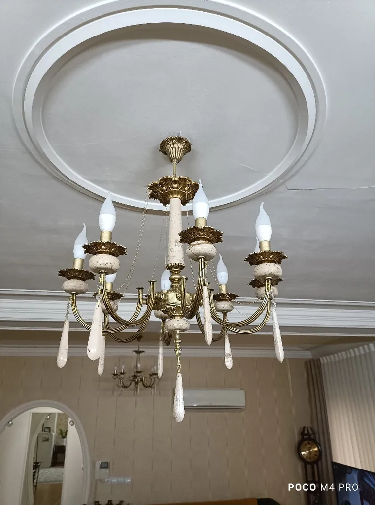 - ⬤ لوستر 8 شعله : این نوع لوستر به عنوان یک عنصر تزئینی و نوردهی در فضاهای بزرگ استفاده میشود. خریداران به زیبایی و طراحی خاص آنها اشاره میکنند. مزیت آنها نوردهی بالا و جلوه زیبا در فضا است، اما نصب سخت و وزن زیاد آنها میتواند معایب محسوب شود.