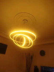 یهدچیزی کم داشت برای نصب که من نمیدونم چی بود و همسرم خرید و اوکی کرد لوستر رو و اینکه نوار طلقی روی ال ای دی یا همون نورش کم گذاشتن عکس رو میفرستم خودتون ببینید