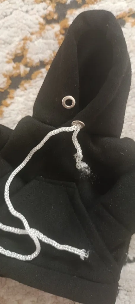 خریدار بدون نام : جنسی که برام ارسال شده شبیه عکس نیست اصلا....توی عکس گره های کلاه هودی سفید رنگ و زیبا و ضخیم عه ولی چیزی که برای من فرستادن یه نخ نازک مشکی بی کیفیته....توی توضیحات ش هم نوشته بودن که یه زنجیر همراهش هست که نفرستادن