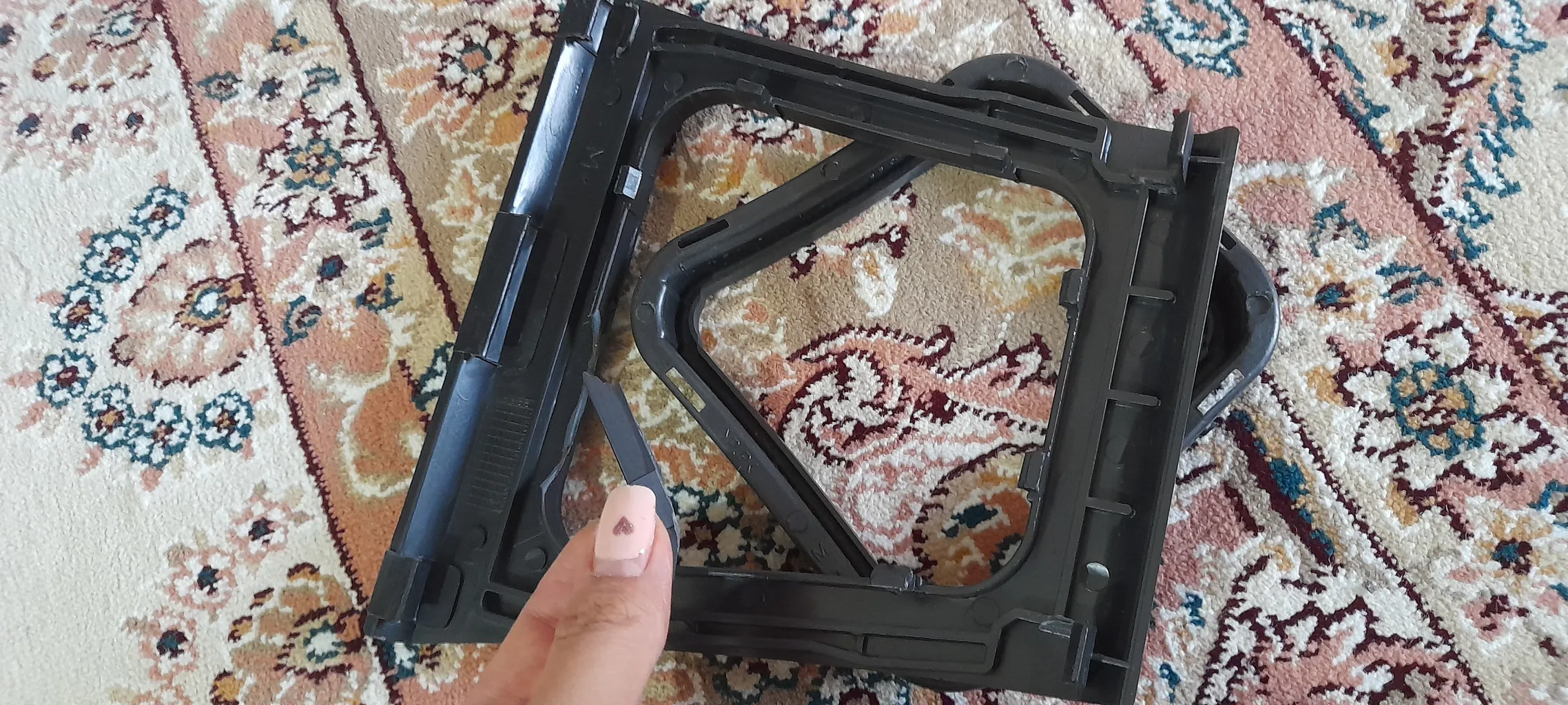 محمدرسول کریمی آهندانی : وصل کردنش خیلی درد سر داشت و زمان گرفت ؛ خیلی سخت بود وصل کردنش نیم ساعت فقط ور رفتم تا بتونم قاب قبلیه رو از زیر دسته دنده بکنم و اینو جا بزنم یکم لق میخورد که با چسب دو طرفه حل شد من برا ساینا اس گرفتم جواب بود