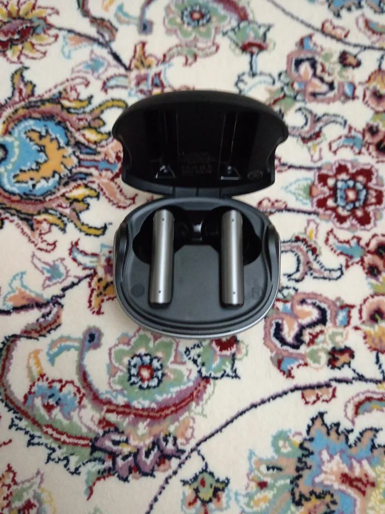 - ⬤ محفظه شارژ : محفظههای شارژ برای هدفونهای بیسیم طراحی شدهاند و به کاربران این امکان را میدهند که هدفونهای خود را به راحتی شارژ کنند. خریداران به طراحی جمع و جور و قابلیت حمل آسان این محفظهها اشاره میکنند. بسیاری از کاربران از این که میتوانند هدفونهای خود را در هر زمان و مکانی شارژ کنند، ابراز رضایت میکنند. اما برخی از خریداران از عمر باتری محفظهها و سرعت شارژ پایین آنها شکایت دارند.