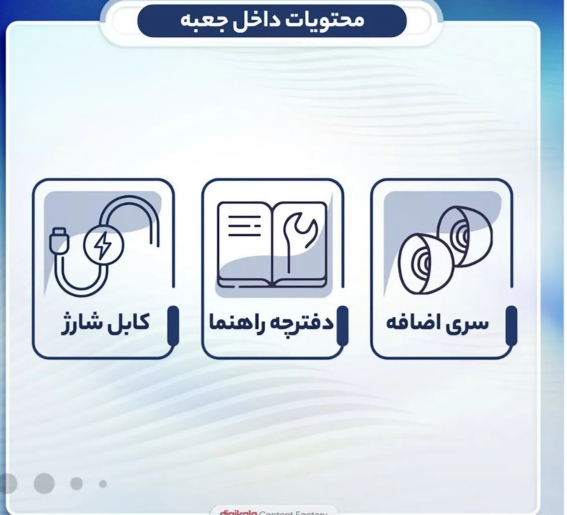 - ⬤ محفظه شارژ : محفظههای شارژ برای هدفونهای بیسیم طراحی شدهاند و به کاربران این امکان را میدهند که هدفونهای خود را به راحتی شارژ کنند. خریداران به طراحی جمع و جور و قابلیت حمل آسان این محفظهها اشاره میکنند. بسیاری از کاربران از این که میتوانند هدفونهای خود را در هر زمان و مکانی شارژ کنند، ابراز رضایت میکنند. اما برخی از خریداران از عمر باتری محفظهها و سرعت شارژ پایین آنها شکایت دارند.