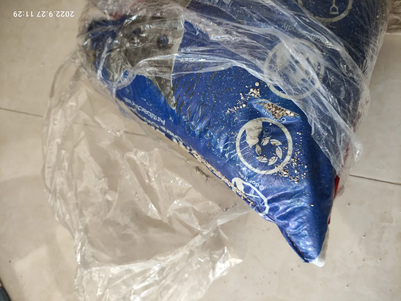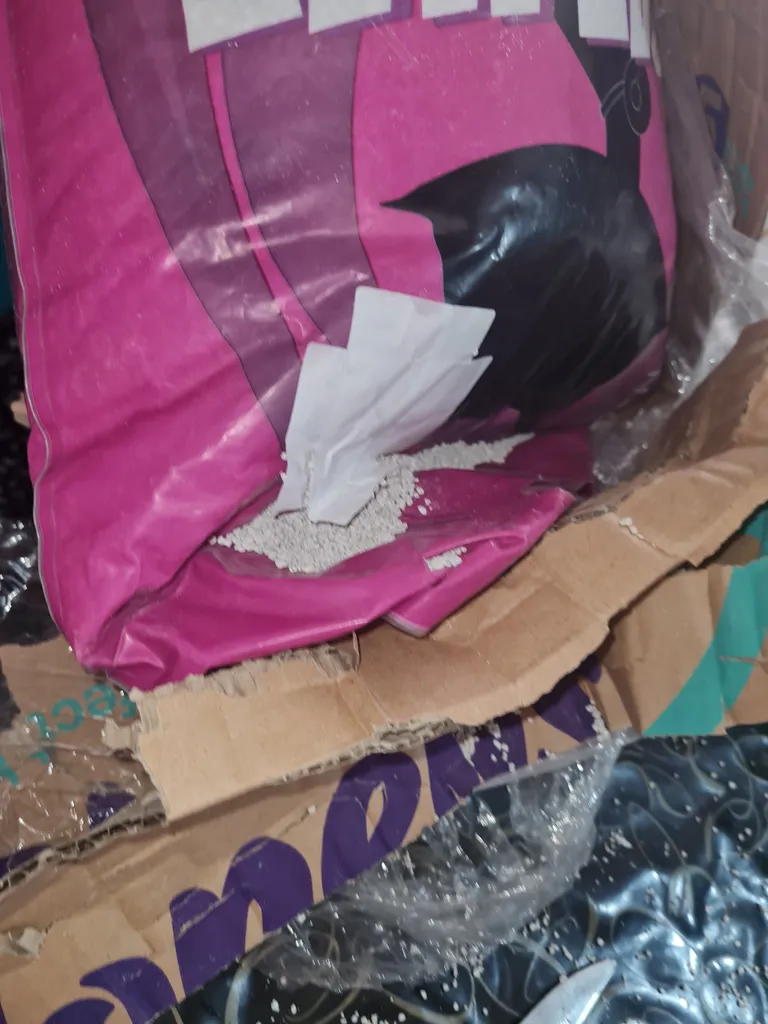 متاسفانه زمانی که به دستم رسید یکی از بسته ها بطور کامل پاره شده بود ، این مسله علاوه براینه منجر شد یکی از خاک ها غیر قابل استفاده باشه ، تمامی محیط ساختمان و منزل پر شد از محتوای بسته شد