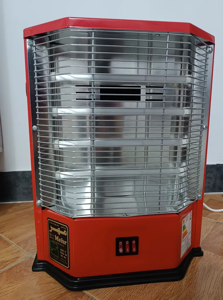 - ⬤ بخاری برقی تابشی : این بخاریها گرما را به صورت تابشی تولید میکنند و معمولاً برای فضاهای کوچک مناسب هستند. مزیت آنها گرم کردن سریع و عدم نیاز به فن است. معایب آنها ممکن است عدم توزیع یکنواخت گرما و محدودیت در گرم کردن فضاهای بزرگ باشد.