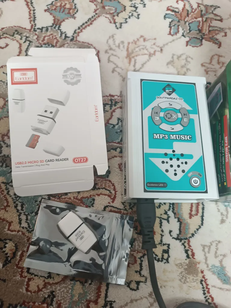 همراه خودش آداپتور و رم 8 گیگ با کلی آهنگ مختلف دارد که خیلی خوب است