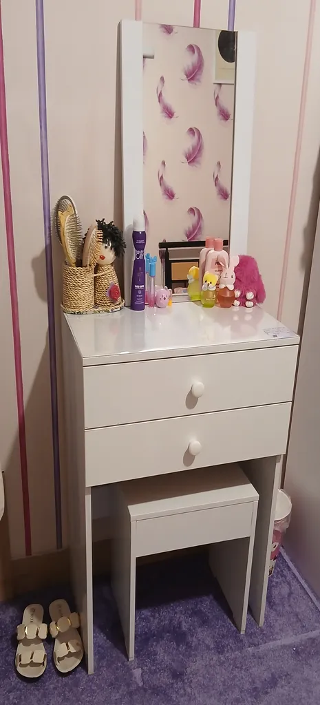 نفیسه سواری : صندلی خیلی خوبی داشت. ساخت عالی. فقط 3 جا خیلی ظریف اسیب دیده بود. برای دخترهای نوجوان ایده خیلی خوبیه. هم میز تحریره هم میز ارایش