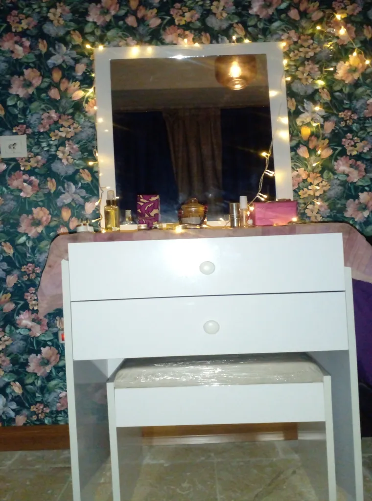 میز آرایش زیباییش به آینه اش هست مثل این بود که این پول رو دور ریختم علاوه بر آن لبه کشو هم زده دارد